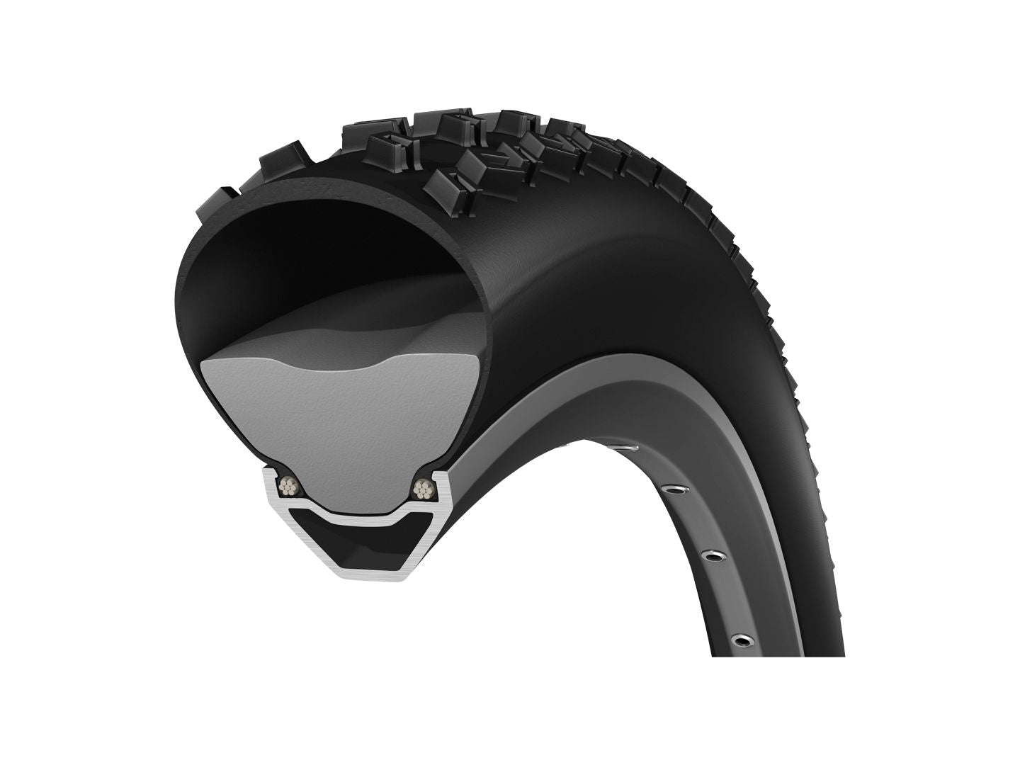 The insert divides the inner volume of the tire in half maintaining air underneath the tread and the foam insert next to the rim